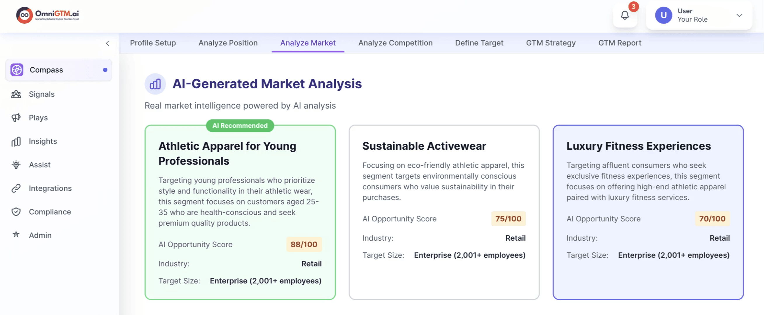 Signals unifies firmographic, technographic, intent, and behavioral data with CRM records and Compass rules. It assigns each lead a dynamic Signal Score (1–100) that adapts to fit, recency, and activity. Every recommendation is transparent, with drivers and confidence levels explained via “Glass Box” AI. It governs lifecycle transitions across marketing, sales, and customer stages while honoring consent rules, and it pushes ready-to-work lists to Plays and coaching cues to Assist.